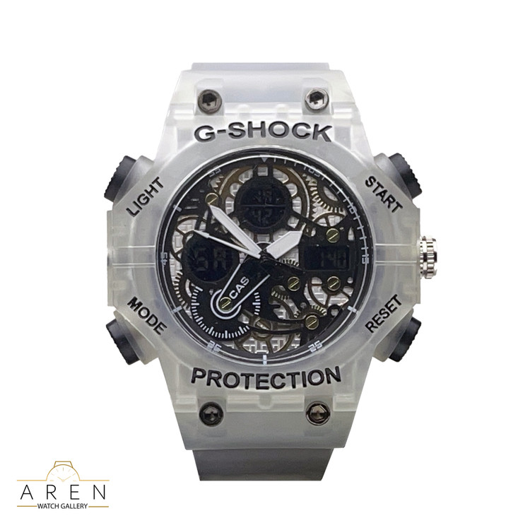 ساعت مچی مردانه کاسیو CASIO اسپرت طرح G-SHOCK بند رابر سفید_مشکی