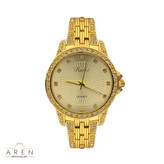 بند فلزی براق با پرداخت دقیق، در کنار صفحه گرد با شیشه چندضلعی، جلوهای مدرن و در عین حال لوکس ایجاد کرده است. ترکیب رنگ مشکی و طلایی نیز هارمونی خیرهکنندهای دارد که با هر استایلی بهخوبی هماهنگ میشود.